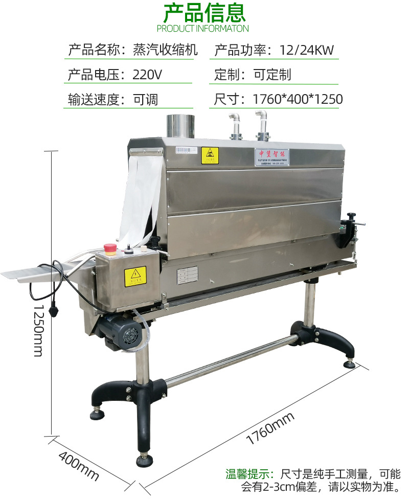 - 生鮮食品包裝:在生鮮食品方面,如肉類、魚類等,蒸汽收縮機可以采用具有良好保鮮性能的包裝薄膜進行包裝。高溫蒸汽在收縮薄膜的同時,還可以對包裝內部進行殺菌消毒,延長生鮮食品的保質期。而且,收縮包裝后的產品更加緊湊,便于運輸和儲存。