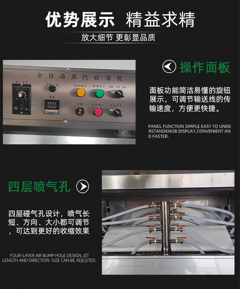 • 蒸汽參數(shù)調(diào)整:通過精確調(diào)節(jié)蒸汽溫度、壓力和流量,可以優(yōu)化收縮效果。溫度一般在 100 - 150℃之間調(diào)整,不同的薄膜材料和產(chǎn)品尺寸要求不同的溫度。例如,在包裝易碎的玻璃制品時,適當(dāng)降低溫度,延長收縮時間,可使薄膜在溫和的條件下緊密貼合產(chǎn)品,避免產(chǎn)品損壞。