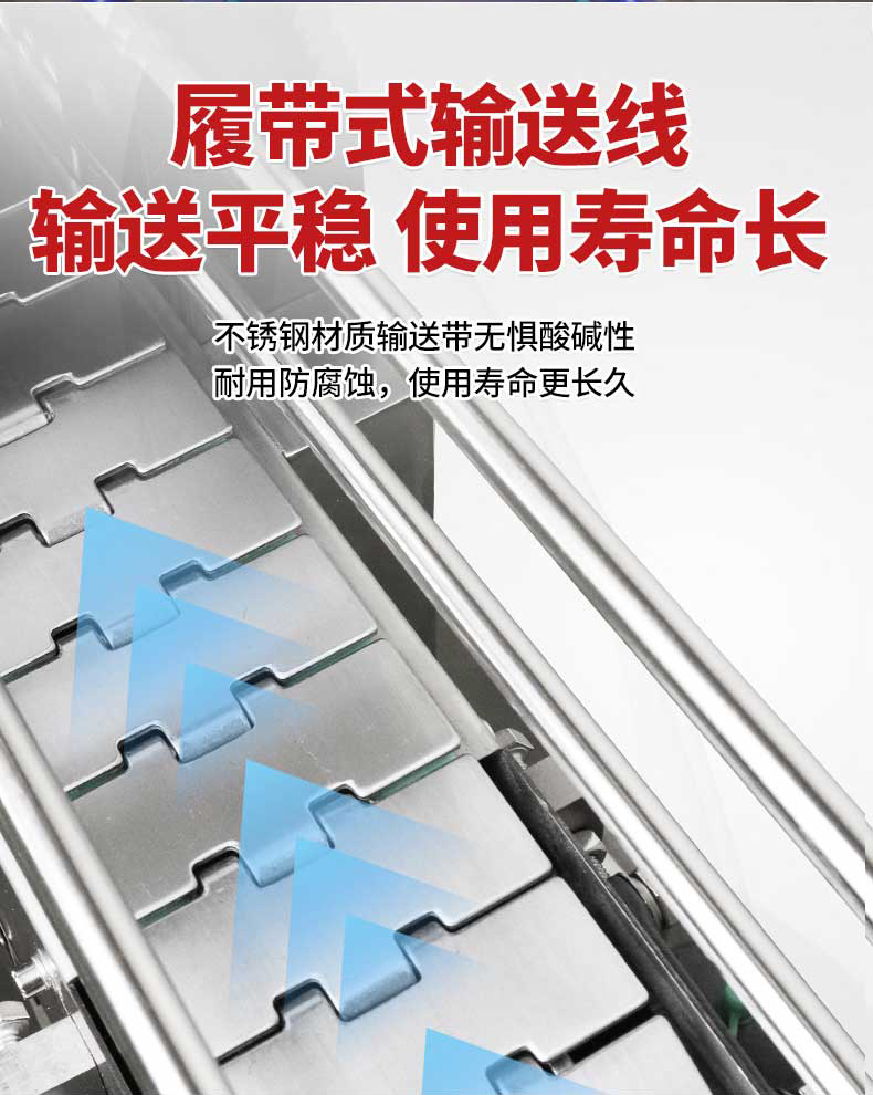 - 傳動(dòng)系統(tǒng):采用網(wǎng)帶、鏈板或滾筒輸送產(chǎn)品,速度可變頻調(diào)節(jié),通常為 0.5-10m/min,以適應(yīng)不同產(chǎn)能需求。