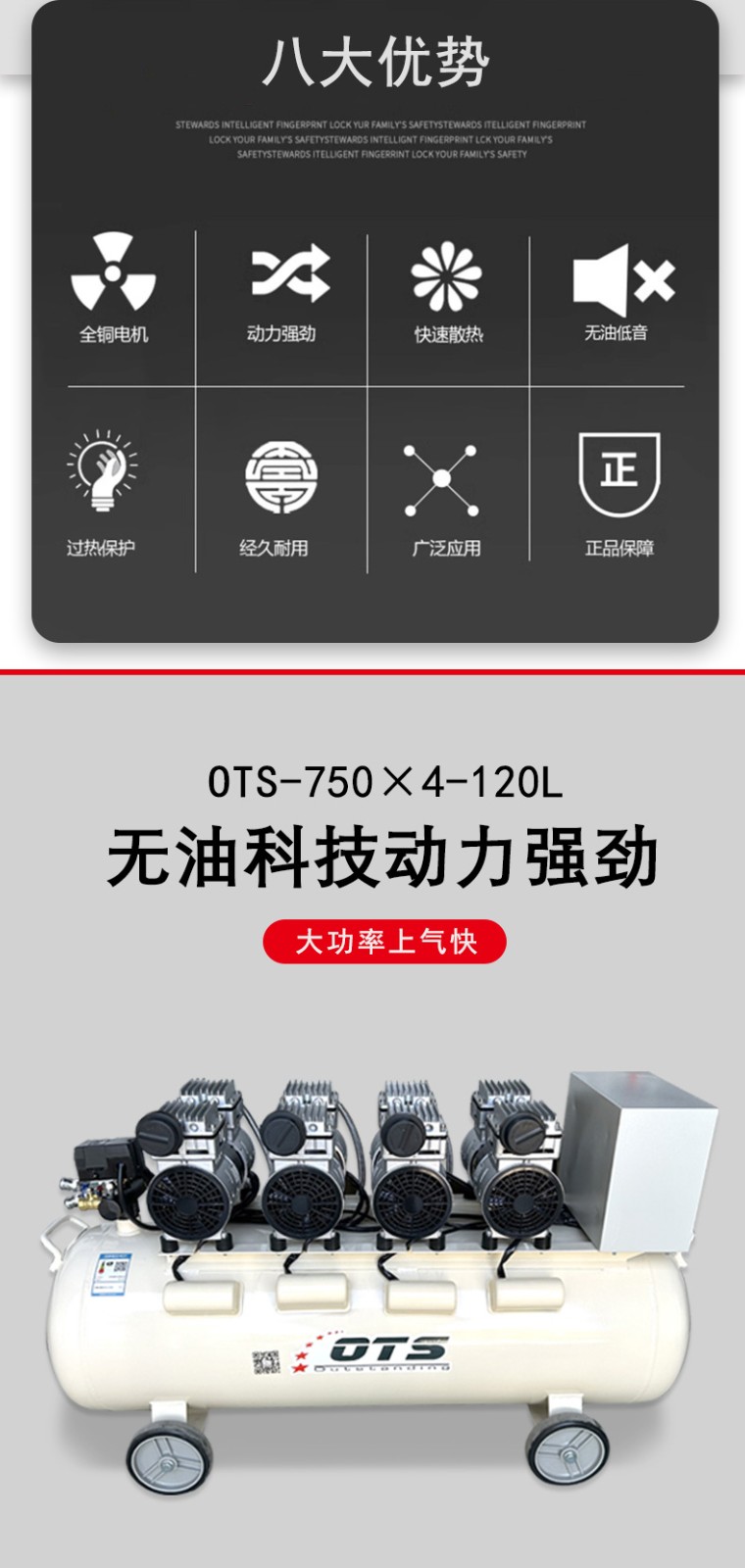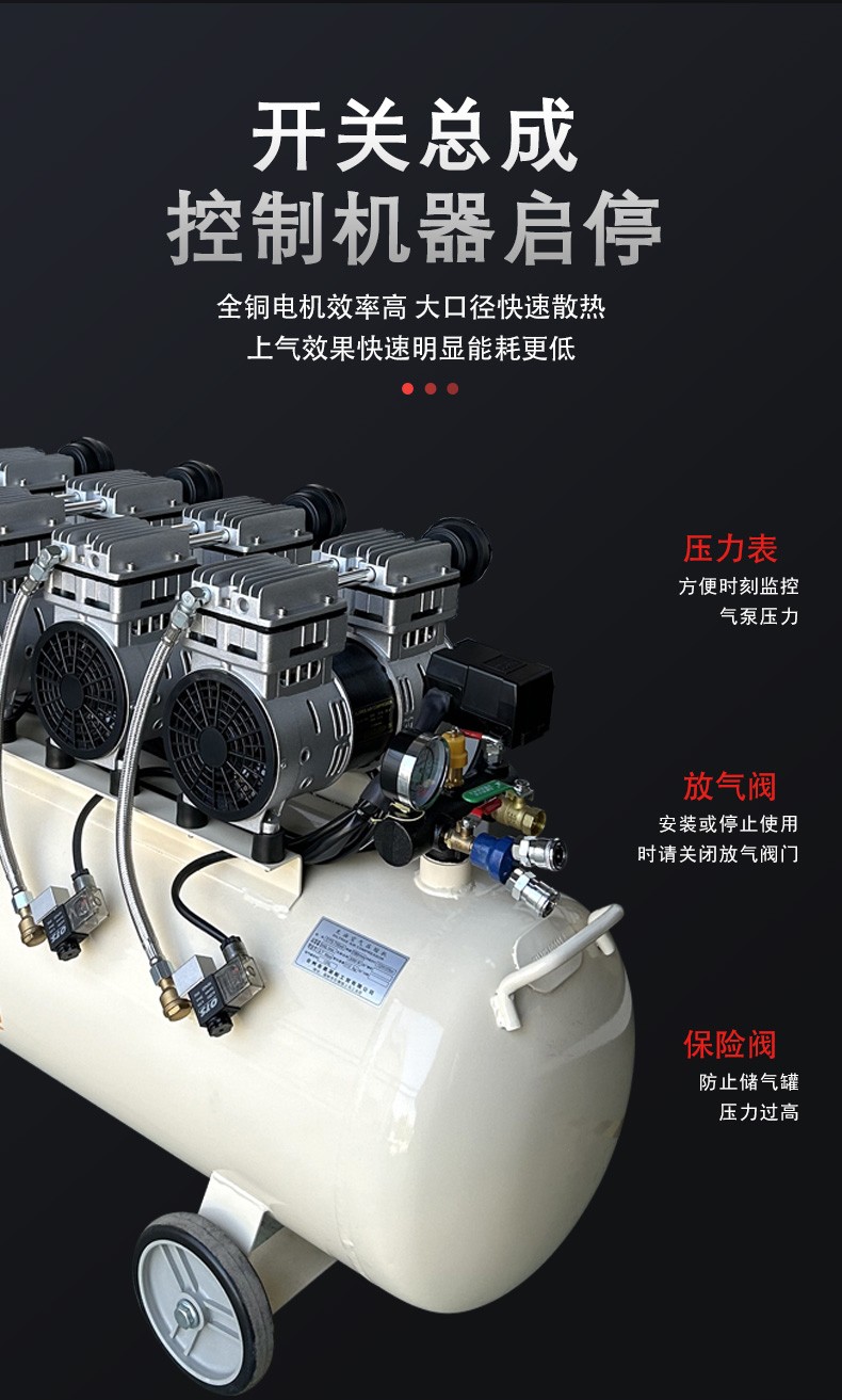 內部壓縮腔無潤滑油參與,依靠自潤滑材料(如石墨、PTFE 涂層、陶瓷部件)或水潤滑實現活塞 / 轉子的運轉。壓縮后的空氣不含油霧、油蒸氣,潔凈度高,可直接用于對氣體純度有要求的場景。