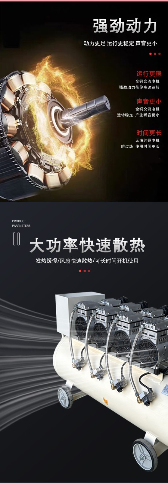 潤滑油的冷卻作用使運行溫度更低,能效更高,同等功率下排氣量更大,運行噪音相對較低。