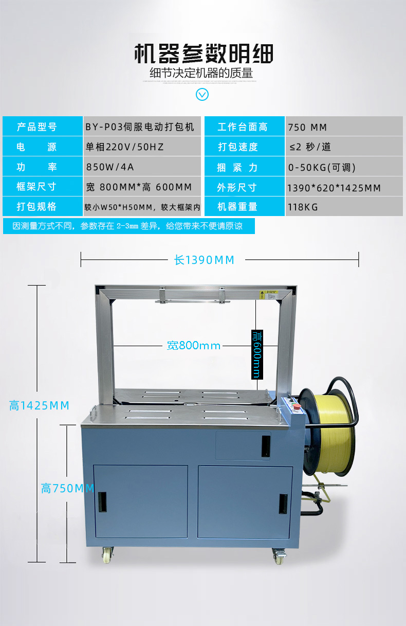 - 伺服打包機的電機運行平穩(wěn),機械磨損小,故障率比傳統(tǒng)機型低 30% 以上,且支持長時間連續(xù)作業(yè),維護周期更長。