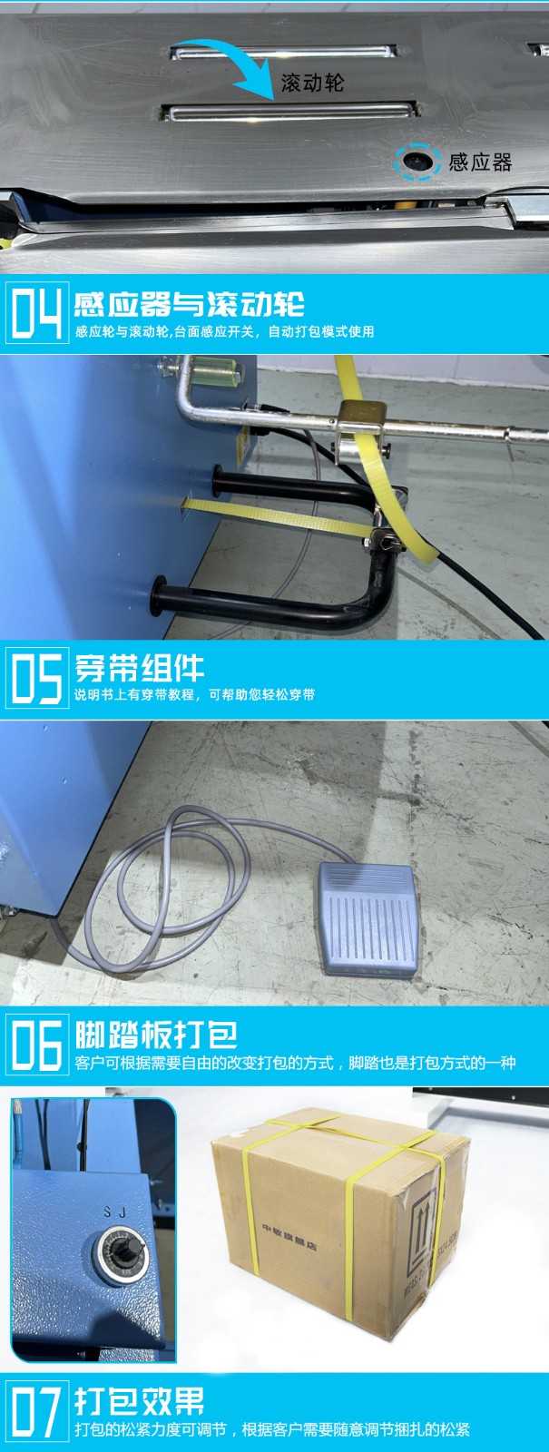 - 伺服打包機搭載伺服電機,可精準控制打包帶的張力、送帶長度和捆扎位置,誤差能控制在毫米級,適配不同規(guī)格、材質(zhì)的包裝件,避免過緊壓損產(chǎn)品或過松導致松散。