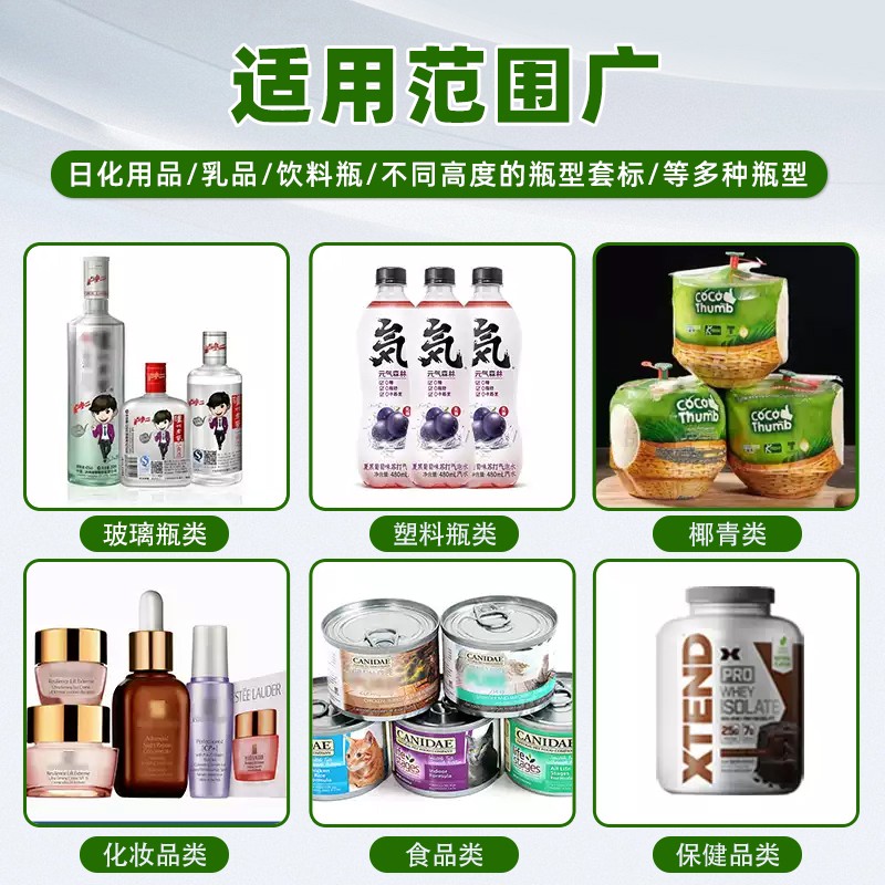 - 適用范圍廣:適用于各種形狀和尺寸的容器,如玻璃瓶、塑料瓶、紙杯等,以及多種材質的標簽膜或收縮膜,如 PVC、PET 等。廣泛應用于食品飲料、化妝品、電子產品、五金工具等多個行業14。