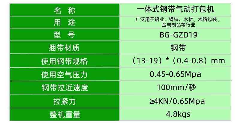 一體式鋼帶氣動(dòng)打包機(jī)BG-GZD19